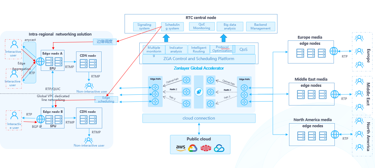 Zenlayer 的 RTC基础设施解决方案主要由两部分组成:超互联实时网络(RTN)和 RTC 媒体全球化。