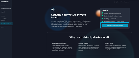 返回 VPC 库存页面,您现在可以看到您的 VPC 正在配置中。让我们点击[+添加实例]开始将其分配给我们的 BMC。