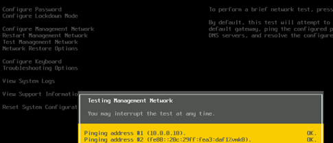 现在,我们来通过选择[Test Management Network](测试管理网络)来测试连接性。从我们的测试结果中,您可以看到我们的主机能够访问网关。