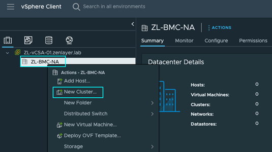 接下来,右键单击我们的数据中心,并选择[新建集群]。