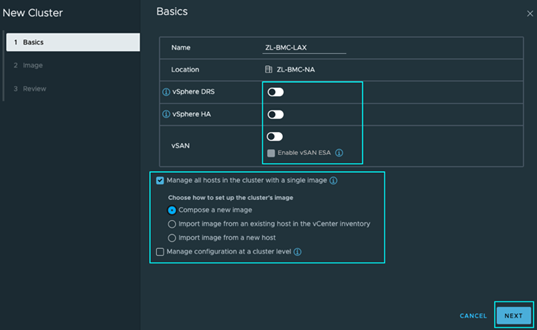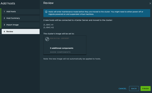 这样做可以让vSphere Lifecycle Manager(vLCM)更新和升级您主机上的软件和固件,并帮助您保持集群节点的统一性。完成此步骤后,点击[下一步]以进入审查部分。