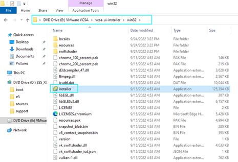 导航到vCenter ISO并选择[vcsa-ui-installer]。接下来,选择您从此ISO部署的父发行版。在我们的例子中,这是Windows,所以我们将选择[win32]。接下来,选择[installer]以启动vCSA安装向导。