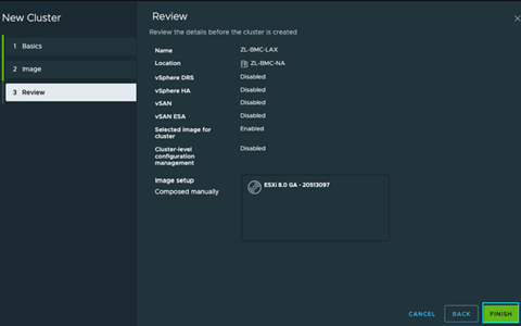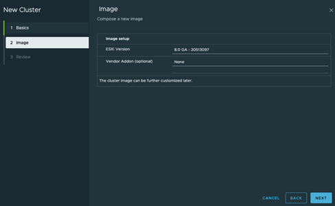 由于我们使用vSphere 8来构建新的集群映像,我们将检查下一页并点击[下一步]以进入最后一页。