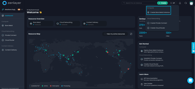 首先,我们将导航到zenConsole:https://console.zenlayer.com。登录后,您将看到控制台主页。在这里,您可以查看所有可配置的服务,以及您已经配置的服务及其当前状态。