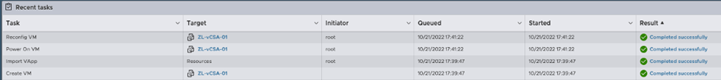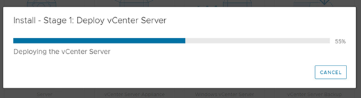 将出现一个滑动条,显示vCenter部署进度。您也可以在ESXi主机的[Recent Tasks]下找到此进度。