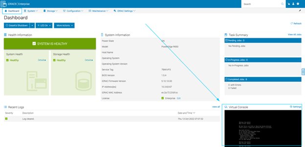请点击[Dashboard]返回到主页。在页面右下角选择[Virtual Console]。您将获得一个带有虚拟控制台的弹出窗口,因此请确保您的弹出窗口阻止程序没有阻止它。
