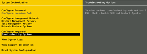 完成后,在DCUI中导航并选择[Troubleshooting Options](故障排除选项)。