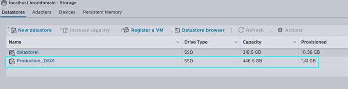 配置完成后,您将能够在存储面板中查看新创建的数据存储。