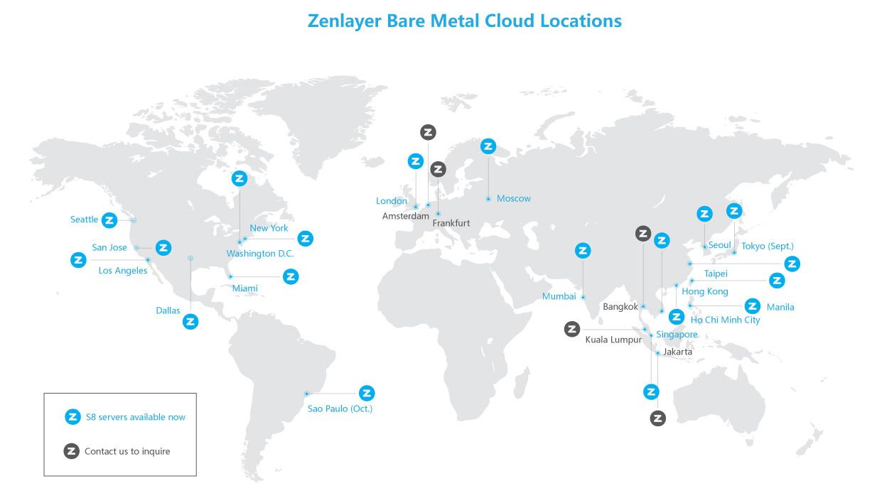 S8 servers are now available in most Zenlayer Bare Metal Cloud locations.